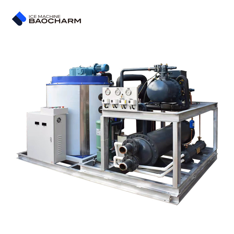 Um Máquina de fazer gelo em flocos para embarcações de pesca é o coração de um sistema. O BAOCHARM suporta a integração de equipamentos auxiliares vitais para o funcionamento eficiente: