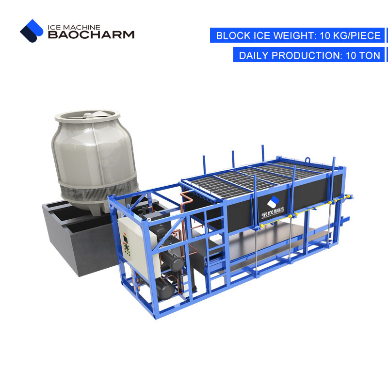 Alta capacidade de 10 toneladas/dia sistema de fábrica de blocos de gelo industrial Para necessidades de refrigeração e preservação em larga escala.